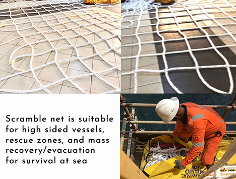The SEAFLOAT knitted Scrambling net is designed to retrieve a MOB, either enabling a